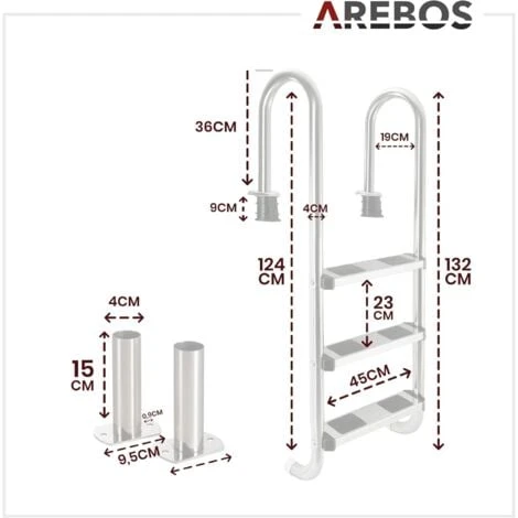 L’échelle de piscine d’AREBOS est parfaite pour entrer et sortir de la piscine. En raison de son design simple, mais haut de gamme, il s’adapte à n’importe quelle piscine.