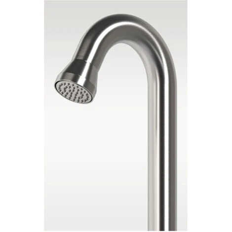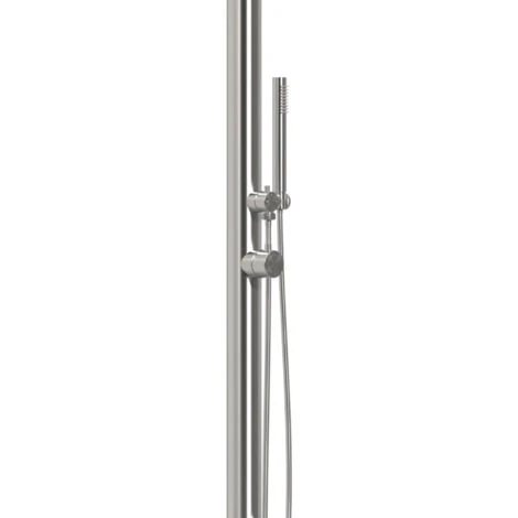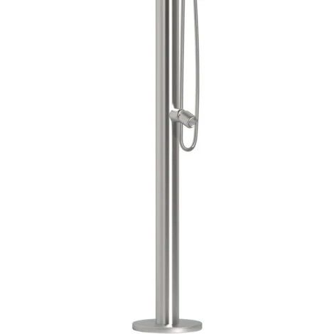 Douche extérieure en acier satiné Aisi Inox 316L avec arrivée d’eau chaude et froide.