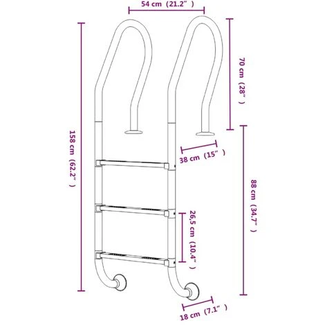 - Matériau durable : cette échelle de piscine est fabriquée en acier inoxydable 304, qui est robuste et durable pour une utilisation à long terme. Elle présente également une bonne résistance à la corrosion et à la rouille.