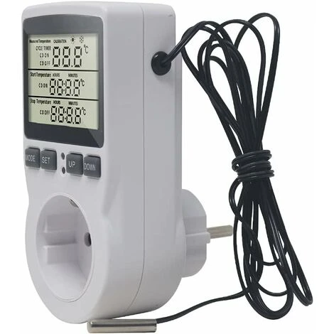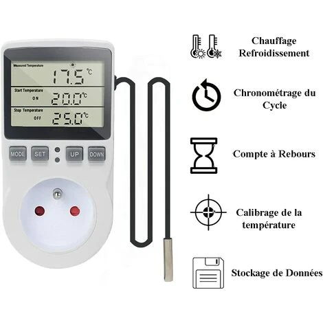 Plus de fonctions : 5 modes au choix (mode contrôle de la température, mode minuterie de cycle F01, mode compte à rebours F02 activé, mode compte à rebours F03 désactivé, compte à rebours F04 activé et compte à rebours désactivé). Grand écran LCD. étalonnage