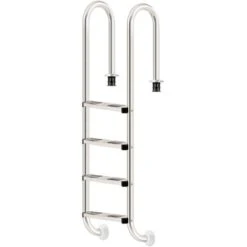 Cette échelle de piscine est fabriquée en acier inoxydable V2A. Cela protège l´échelle de la piscine contre la rouille et la corrosion, dues à des produits chimiques agressifs ou à des conditions climatiques variées.